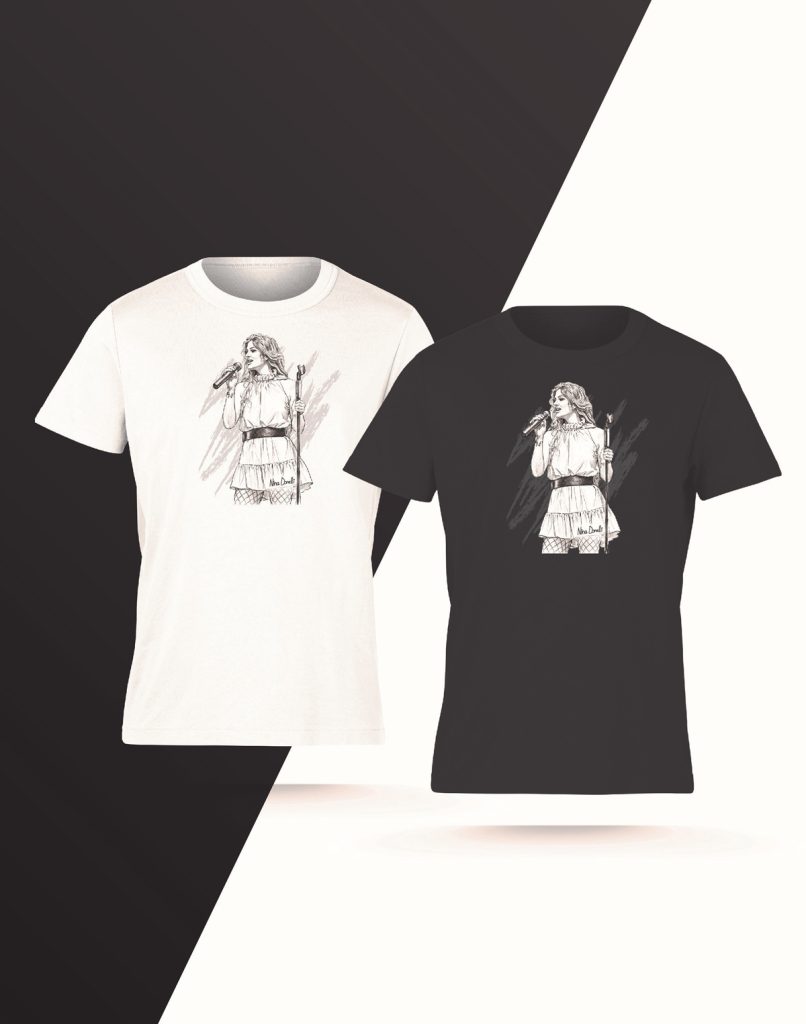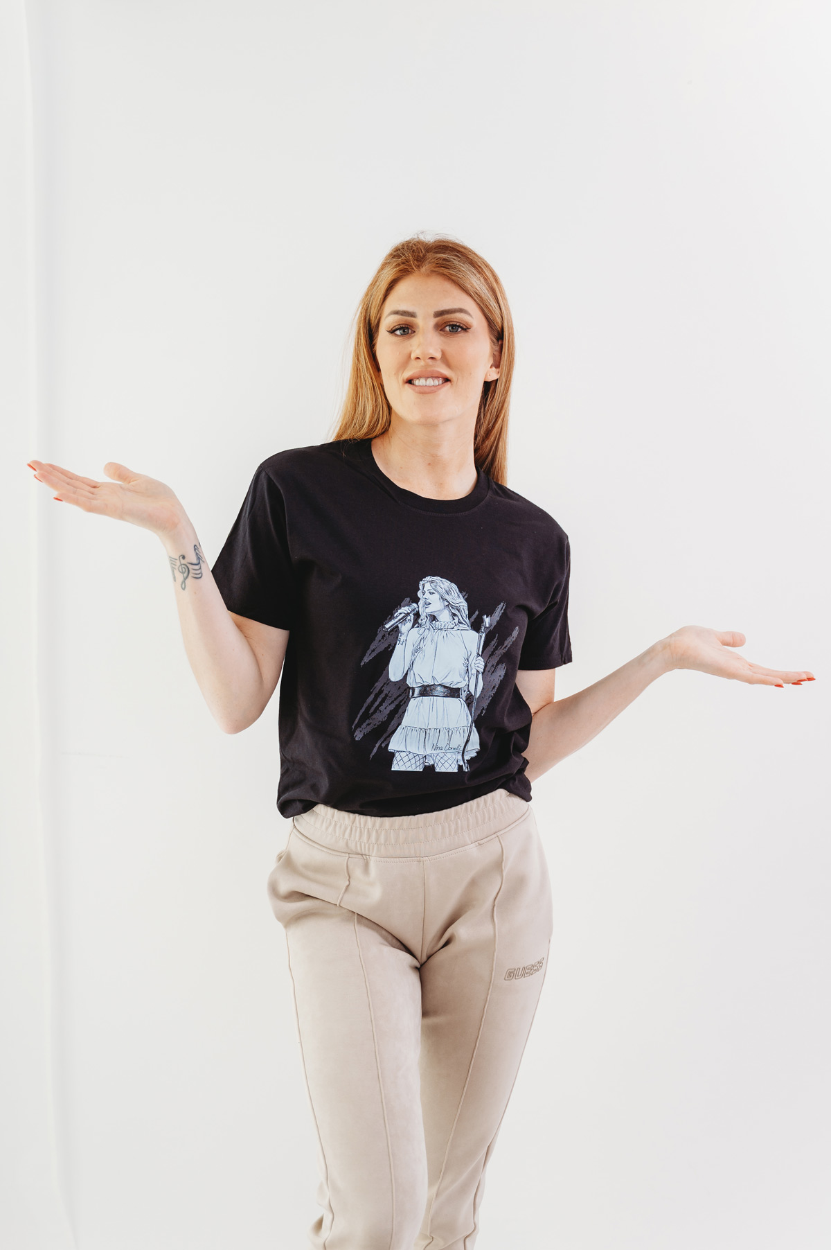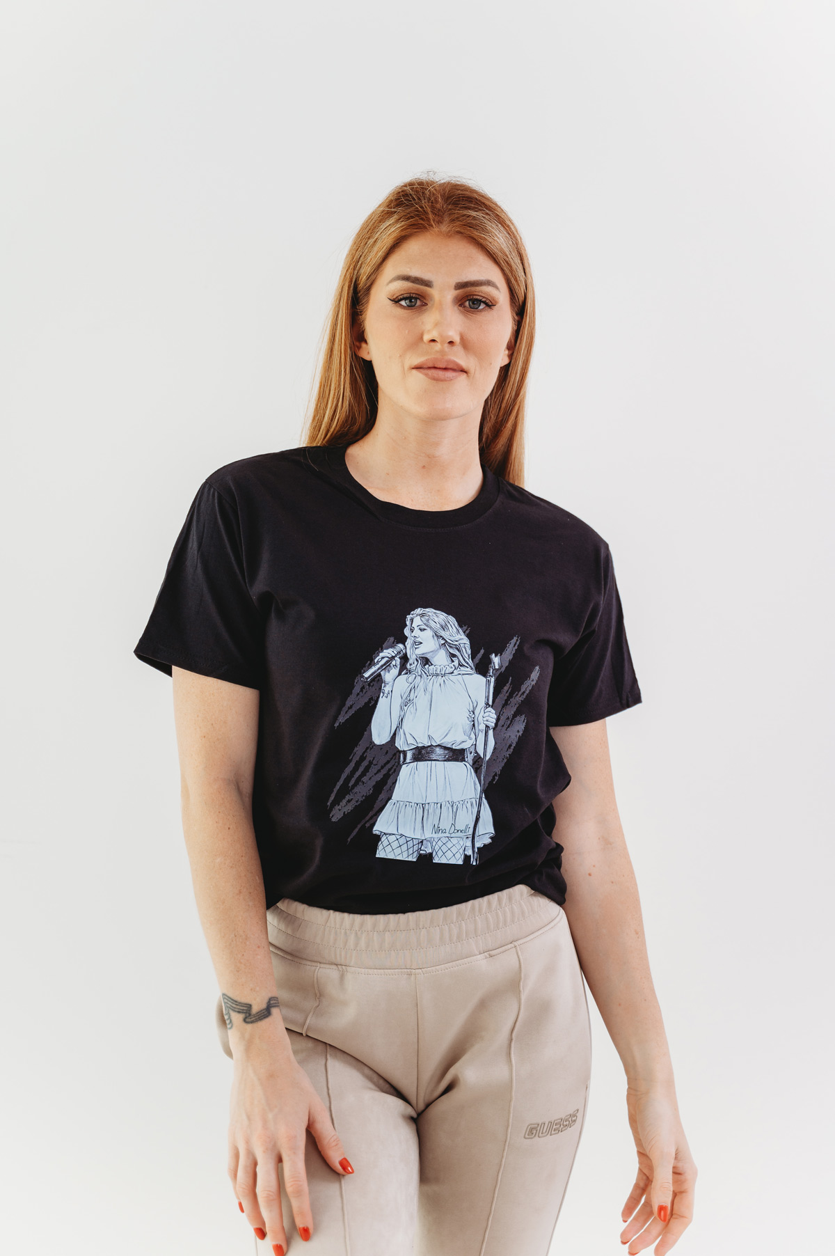 Preprosta in udobna kratka majica z ilustracijo mene na odru in mojim podpisom. Majica je mehka, prijetna za nošenje in ustvarjena za vse, ki želite nositi del moje zgodbe.